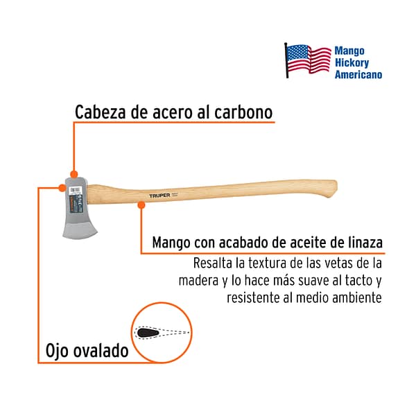 Certificada bajo la especificación federal ASME B107.400, esta hacha excede los estándares de calidad y está respaldada por la garantía Truper contra defectos de fabricación, ofreciendo confianza y durabilidad en cada uso.