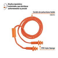 Protege tu audición en entornos ruidosos sin sacrificar la comodidad con el tapón auditivo reutilizable Truper de triple barrera. Diseñado con una construcción ergonómica de triple falange, se adapta suavemente al canal auditivo proporcionando un sellado efectivo y una reducción de ruido de 25 dB (NRR). Su cordón de poliuretano tejido de 68 cm permite llevarlo alrededor del cuello cuando no está en uso, evitando pérdidas y manteniéndolo siempre a mano para cuando el ruido lo requiera.