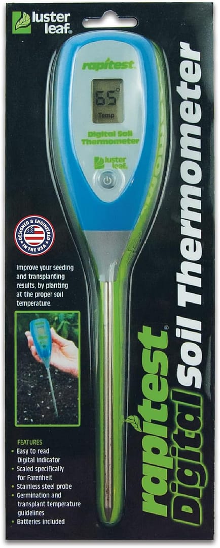 Maximiza el éxito de tus cultivos y trasplantes con el termómetro digital Rapitest 1625, diseñado específicamente para medir con precisión la temperatura del suelo. Esta herramienta esencial indica el momento óptimo para la siembra temprana o el trasplante de diversas variedades de plantas, evitando riesgos por heladas o temperaturas inadecuadas. Su pantalla digital moderna ofrece lecturas claras e inmediatas, mientras que la sonda larga asegura mediciones precisas a la profundidad correcta donde se desarrollan las raíces.